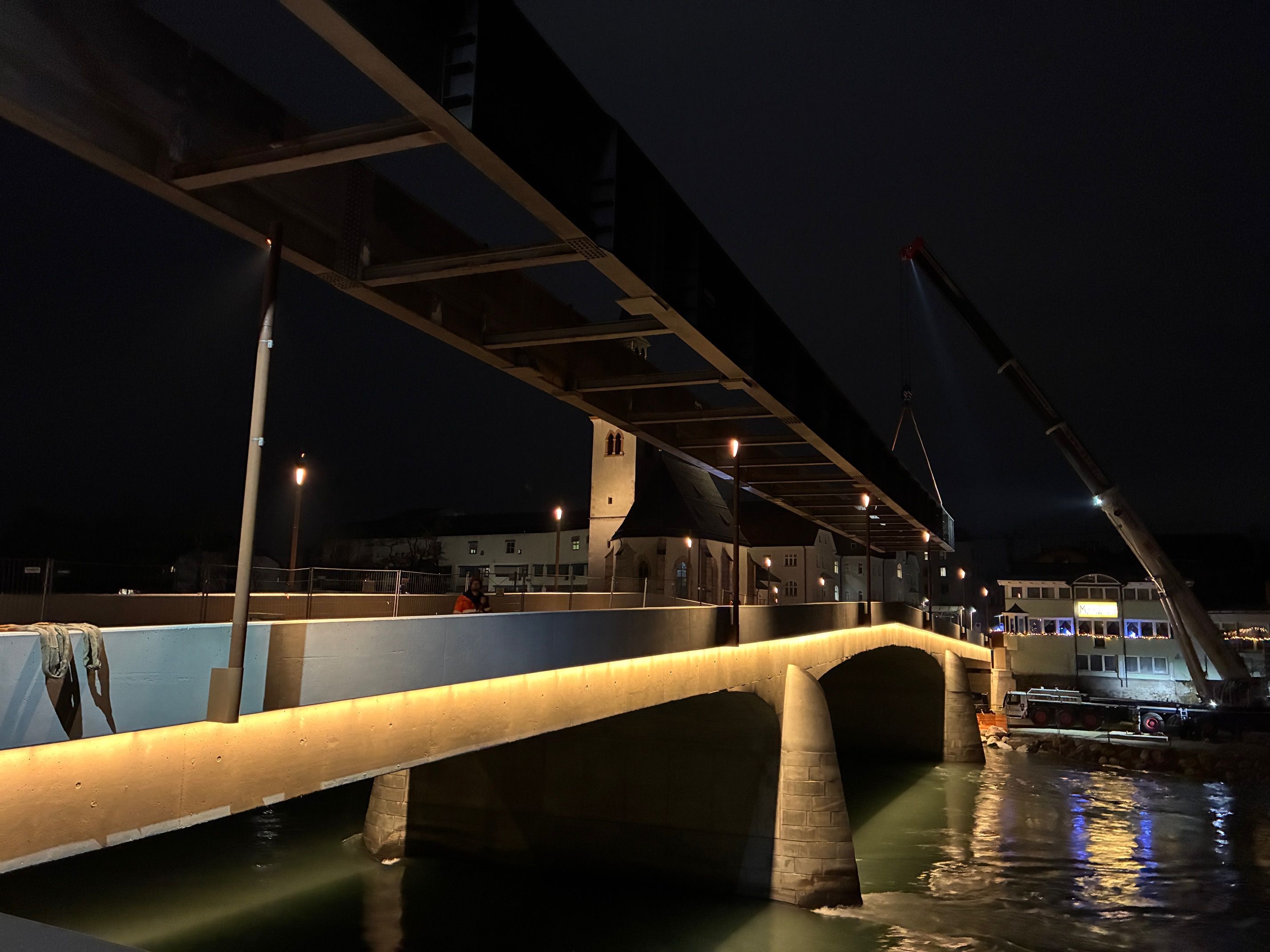 Die Steinbrücke ist jetzt beinahe fertig, die Hilfsbrücke ausgehoben. 3 Jahre intensiver Planungsarbeit und 2 Jahre Bauzeit für eine Spannbetontrogbrücke, eine anspruchsvolle Bauweise.